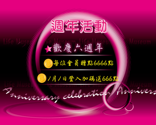2.於當天時間內,成功登入『生命博物館』網站,即加碼贈送元寶666,每位會員限領取一次。