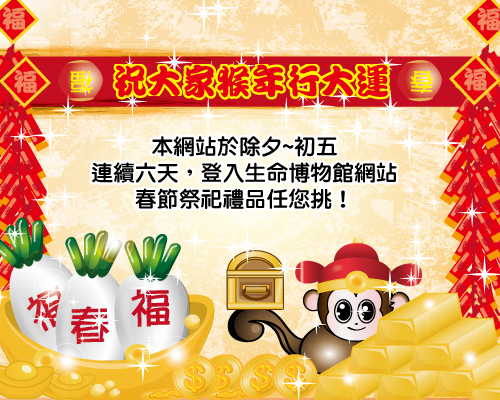 本網站於除夕(02/07)~初五(02/12)連續六天,登入生命博物館網站,即贈送春節禮品