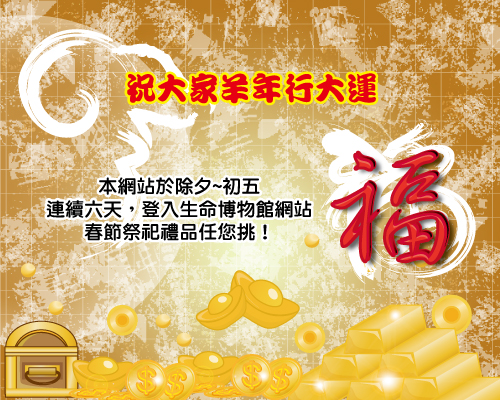 本網站於除夕(02/18)~初五(02/23)連續六天,登入生命博物館網站,即贈送春節禮品